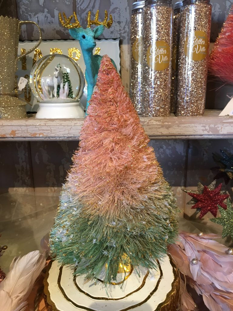 How many ornaments do we need? Ribbons? Trim? Lights? Time to minimize this process and downsize. My problem is that I love all the ornaments, trim, etc. that I’ve been collecting for a lifetime. The high end and low end ornaments all talk to me in different ways. Maybe I’ll be in the mood for glitter and glam, modern rustic, woodland creatures, geometric retro, or outdoors….it’s just an endless tub of possibilities for this creative brain. I must admit, I am just a glitter person. I always have been and always will be because somehow this tinsel effect just draws me in.